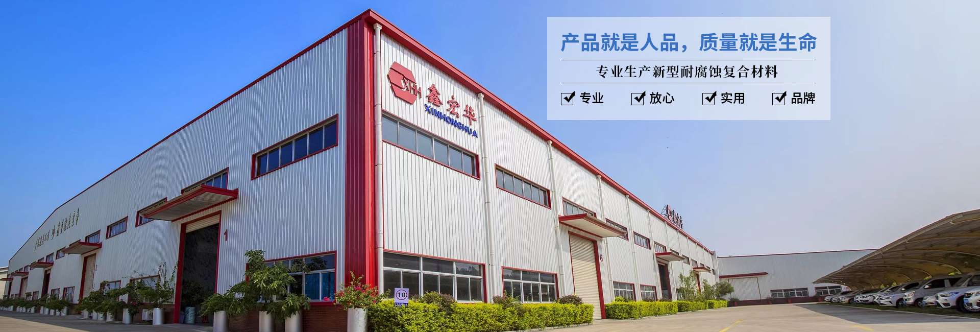 鑫宏华人始终将“产品就是人品,质量就是生命”作为企业座右铭。以真诚热情的为人处事和勤奋严谨的态度努力工作。“鑫宏华”牌耐腐蚀复合材料必将成为您可信赖的名牌产品。欢迎四海宾朋有识之士前来工厂参观洽谈,携手共创美好未来!